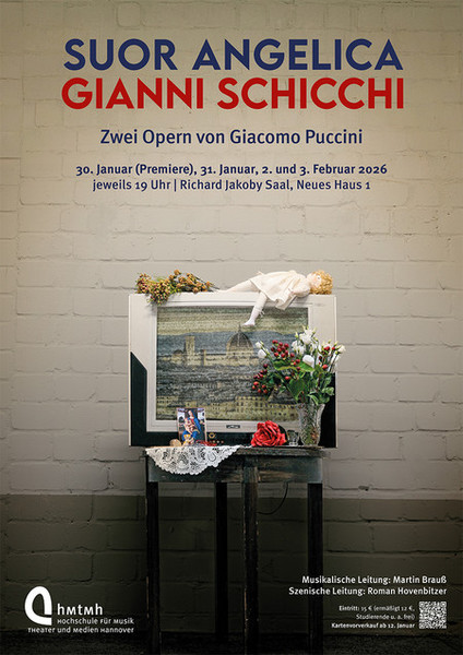 Im Jahr 1904 begann Giacomo Puccini mit den Vorbereitungen für Il Trittico, das schließlich im Jahr 1918 in New York uraufgeführt wurde. Einakter wie Mascagnis Cavalleria rusticana und Leoncavallos Pagliacci waren um die Jahrhundertwende auf den Opernbühnen in Mode gekommen und in seinem Trittico verband Puccini gleich drei davon: ein tragisches, ein sentimentales und ein komisches Stück am einem Abend. Zwei dieser kurzen Opern – Suor Angelica (die sentimentale) und Gianni Schicchi (die komische), das Libretto stammt jeweils von Giovacchino Forzano – werden von Gesangsstudierenden der HMTMH als Doppelpack auf die Bühne des Richard Jakoby Saals gebracht. Tod und Familie, die ewigen Themen, stehen im Mittelpunkt ihrer Geschichten, aber ganz so einfach ist das wie immer nicht. Die Familien: zutiefst dysfunktional. Der Tod: mal ein frei gewählter, mal ein Anlass für allerlei Ränkespiele. Das Hochschulorchester spielt unter der musikalischen Leitung von Martin Brauß die reduzierte Fassung von Ettore Panizza. Die szenische Leitung hat Roman Hovenbitzer. Bühnenbild: Greta Löwe und Paula Preuschhof. Kostüme: Luise Baum-Krüger, Helene Möller und Anna Scholz. Die Produktion ist eine Kooperation mit der Hochschule Hannover und dem Mädchenchor Hannover.